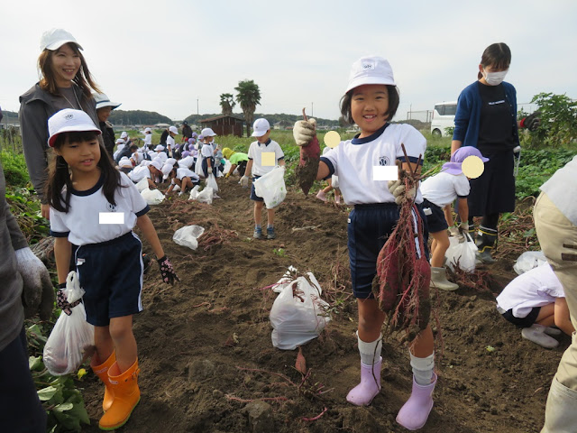 生活科の学習の一環で、1年生がサツマイモ掘りに出かけました。以前の2年生同様、やはたこども園さんの取組に八幡ふぁーみんさんがご支援くださり実現しているものです。サツマイモは、ふぁーみんさんの畑で育てていただいています。今回も、こども園さんからの呼びかけで、1年生児童たちも収穫を体験することができました。ありがとうございました。収穫したサツマイモは、小分けにして持ち帰りますので、ご家庭で、焼き芋やスイートポテトなどにして味わってみてくださいね。